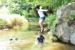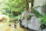 岩から飛び込んだり、カニや魚を取ったり、水かけをしたり・・・
