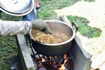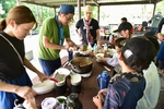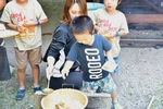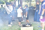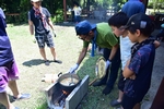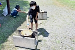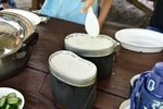お昼ごはんは、キャンプ定番のカレーです。ご飯は飯盒で炊きます。