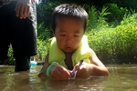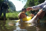 さあ、水着に着替えて、待ちに待った川遊びに行きます。