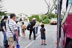 ここから先は、道が細く大型バスが入れないためキャンプ場近くでバスを降ります。