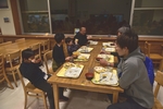 指定された時間に夕食をとります。