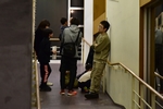 受付。ネームプレート配布。バスに荷物を積み込みます。