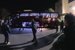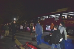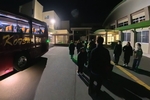 真っ暗の中、お見送りの方に手を振って籠原小学校を