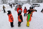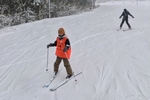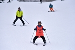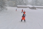 今回初めてスキー板を履いた子供たちが、1人で滑り降りてきます。