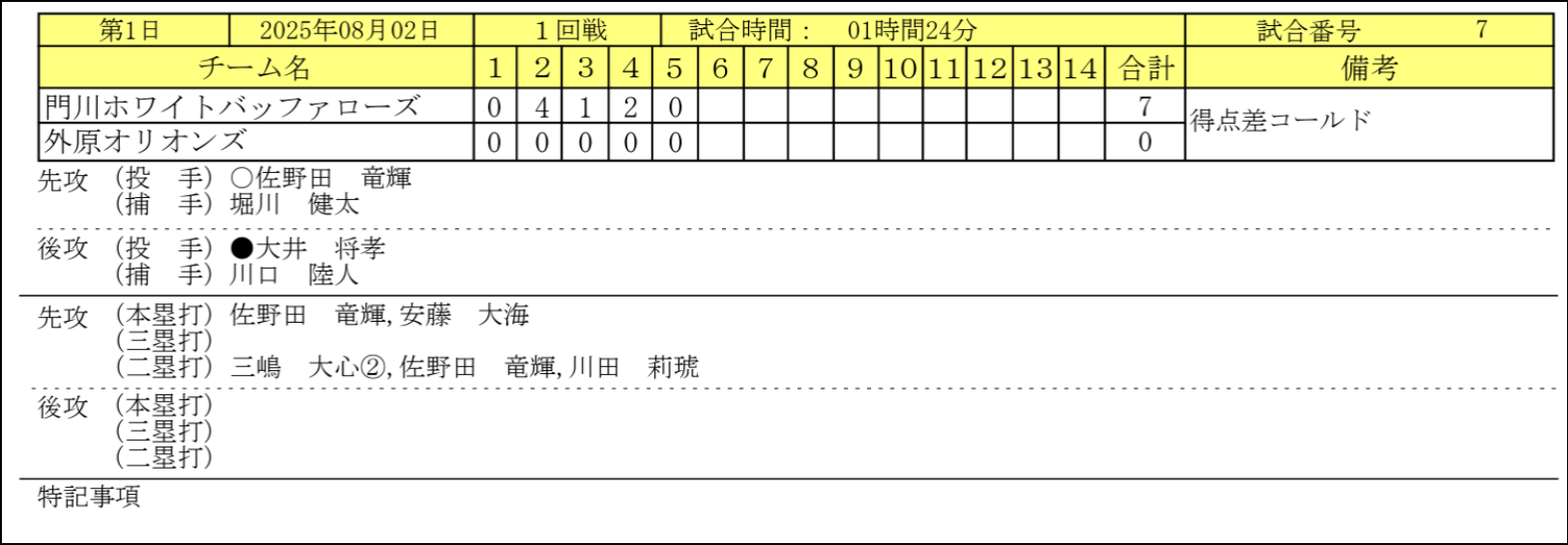 ○2025/08/05 外原オリオンズ(ソフトボール) 第39回全日本小学生男子大会(ソフトボールの全国大会)に外原オリオンズが埼玉県代表で出場しました。1回線で宮崎県代表のチームと対戦し負けてしまったようです。 初の全国舞台、本当によく頑張りました。この経験が、きっと未来の力になると思います。大会の公式Web |