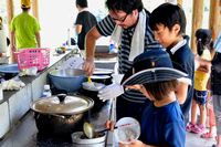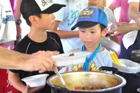 お昼ごはんは、キャンプ定番のカレー。ご飯は飯盒で炊きます。