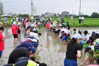 ○2011/6/26 おやじの会 田植え 籠小児童が、鎌倉鶴の子会、三尻小、熊谷西小と共同で、田植えを行いました。収穫するお米は、鎌倉の鶴岡八幡宮に奉納されます。 |