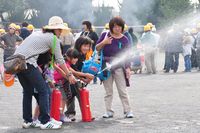 ○2011/10/23 連合自治会 籠原地区防災訓練 籠原小学校にて連合自治会主催の防災訓練実施。初期消火、油なべ火災消化、担架作成、車椅子、心配蘇生およびADEの訓練を行いました。 |