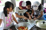 お昼ごはんは、キャンプ定番のカレー。ご飯は飯盒で炊きます。