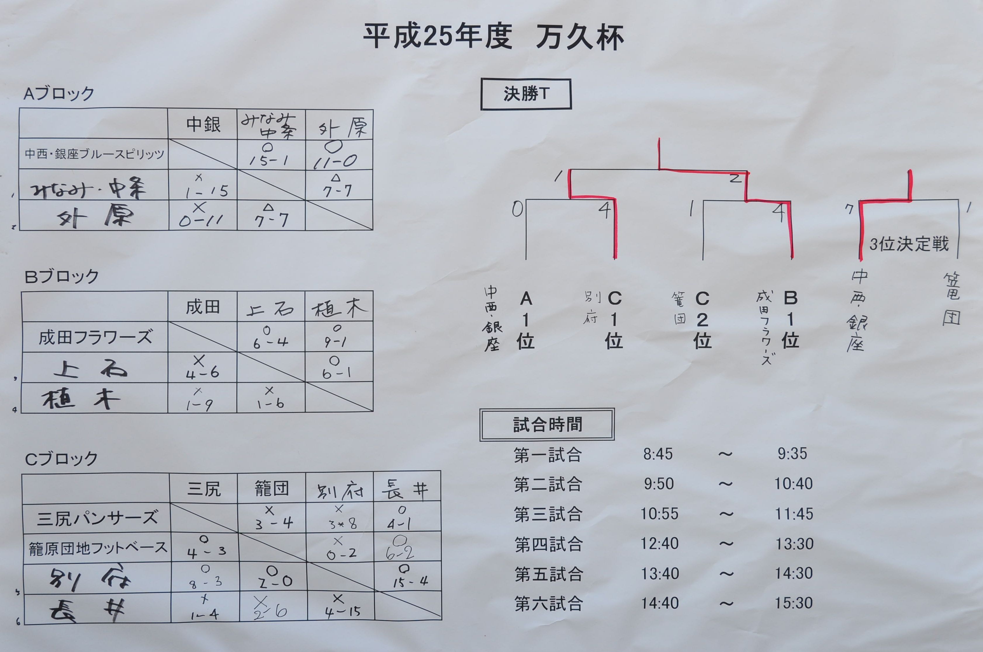 優勝できなかったチームは次回ひとつでも良い成績が収められますように。