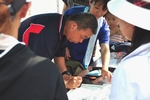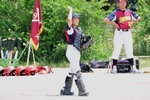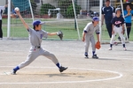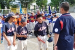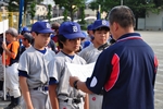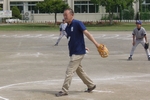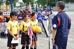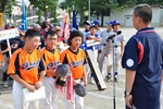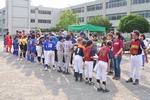 籠原小学校校長、籠原小学校PTA会長による始球式。