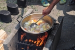 お昼ごはんは、キャンプ定番のカレー。ご飯は飯盒で炊きます。