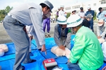 応急救護訓練 (三角巾、心肺蘇生、AEDを受かっての応急救護訓練)