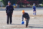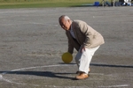 自治会長による始球式。
