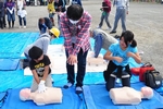 応急救護訓練 (三角巾、心肺蘇生、AEDを使っての応急救護訓練)