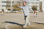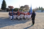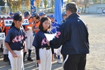 自治会長、小学校PTA会長による始球式。
