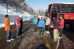 横川、松代などで休憩。スキー場に近づくにつれ、道路や、サービスエリアの雪が多くなって行きました。