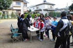 ゴールでは、得点の集計や写真撮影、ビブスの回収、参加賞や焼きそば・豚汁の配布。
