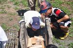 薪に火を点け・・・、野菜を切って・・・