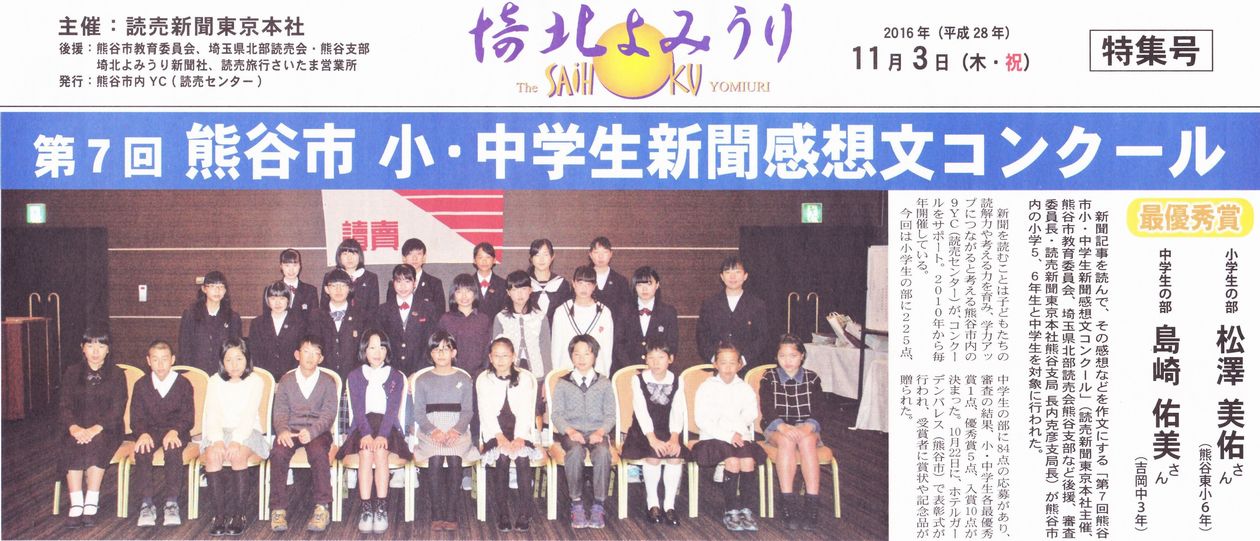 熊谷市小・中学生新聞感想文コンクールの 記事が掲載されました。籠原小学校児童の感想文が優秀賞に選ばれました。(記事をクリックすると、記事が拡大します) |