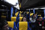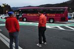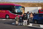 受付。ネームプレート配布。バスに荷物を積み込みます。