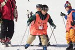 始めてスキーを履いた子供が、ボーゲンで滑れるようになりました。