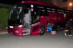 受付。ネームプレート配布。バスに荷物を積み込みます。