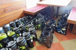 ウエアーに着替え、スキーの準備をします。