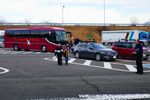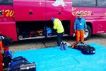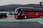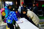 受付。ネームプレート配布。バスに荷物を積み込みます。