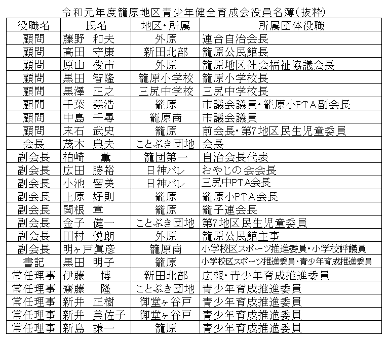 ○2019/05/19 育成会 総会 籠原公民館和室にて青少年健全育成会の 総会が 開催されました。 平成30年度報告、および令和元年度計画等 が承認されました。本年度も、よろしくお願い いたします。 |