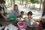 お昼ごはんは、キャンプ定番のカレーです。ご飯は飯盒で炊きます。