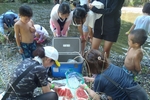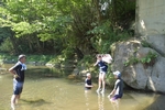 岩から飛び込んだり、カニや魚を取ったり、水かけをしたり・・・